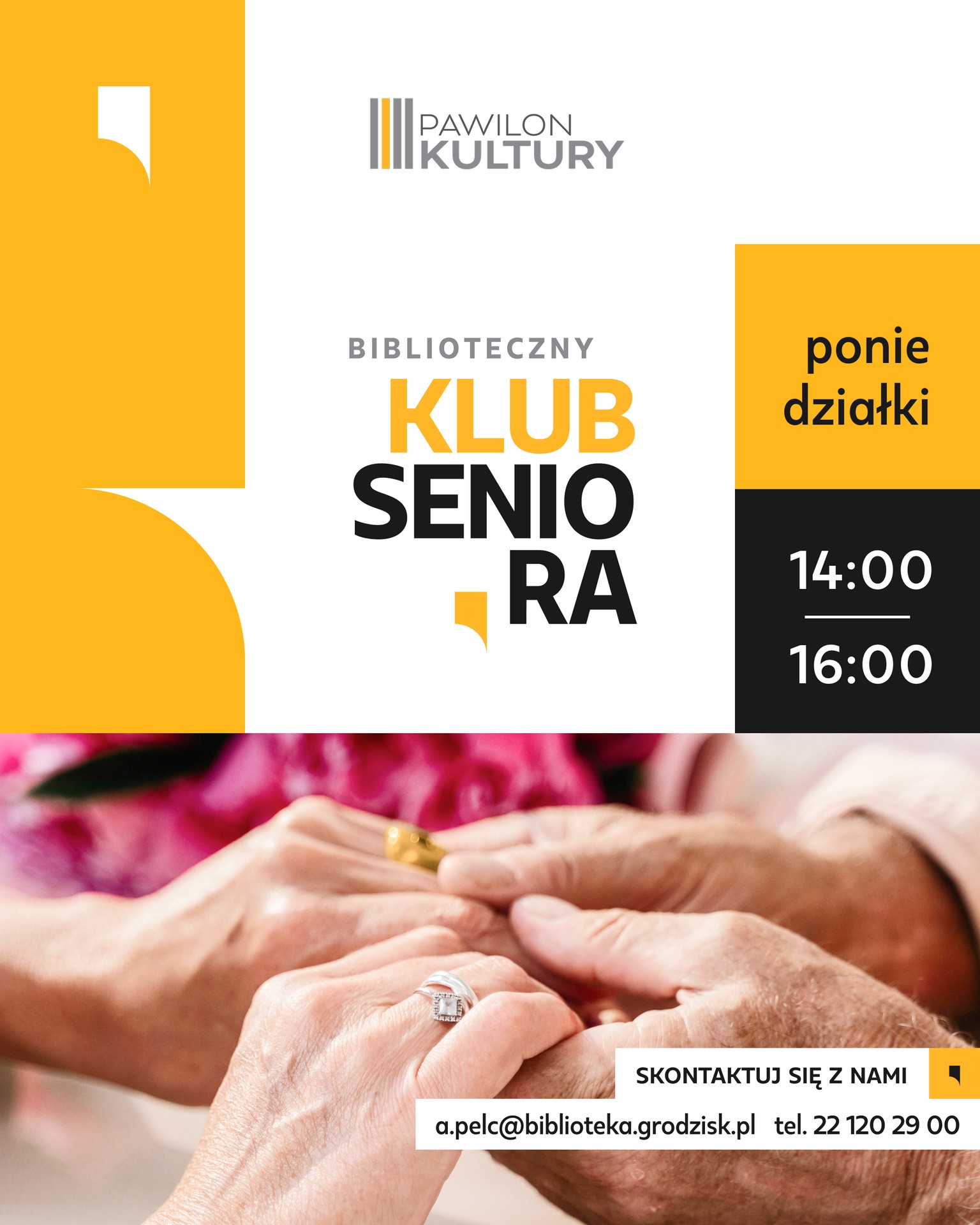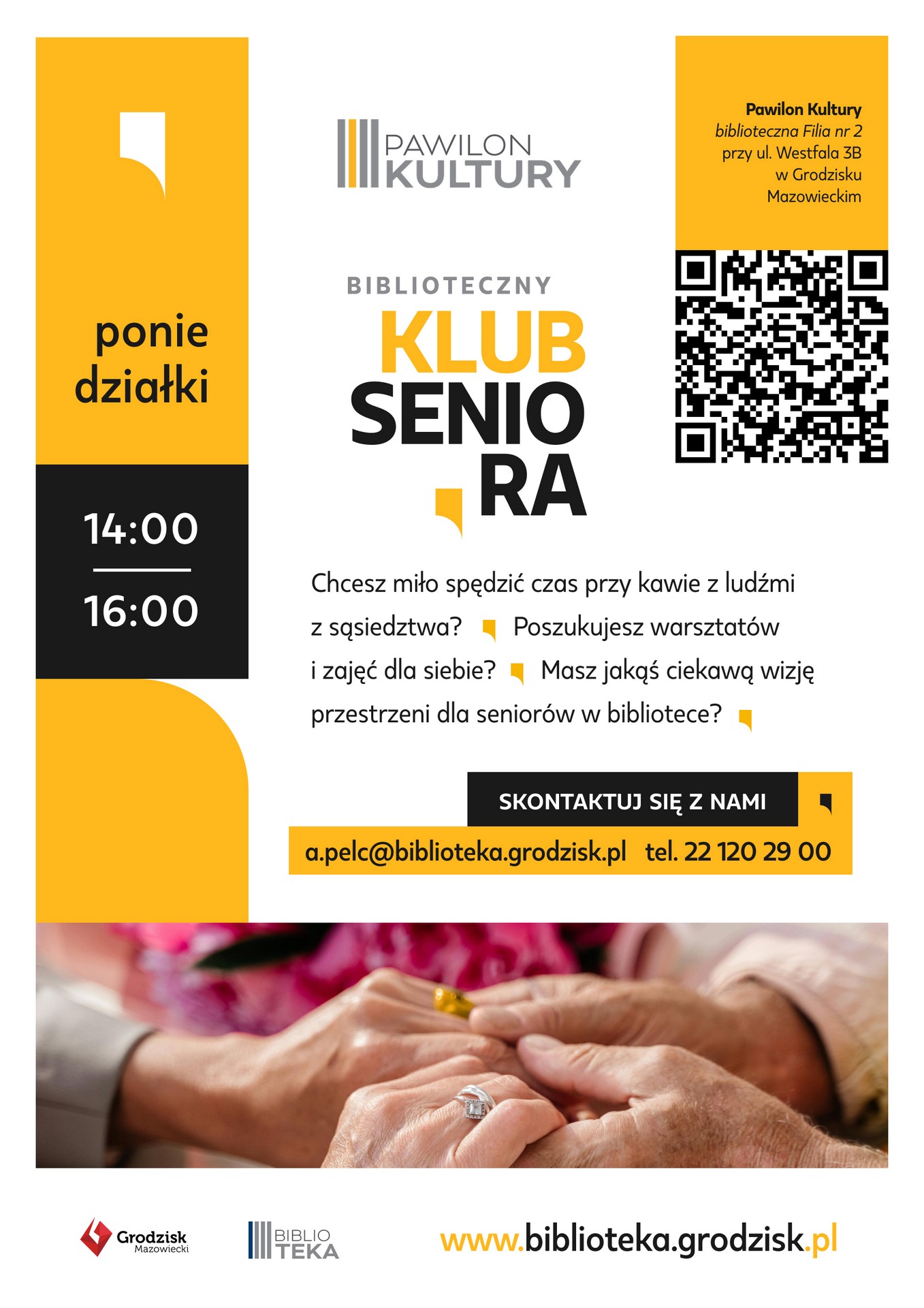 Więcej informacji o Klubie Seniora uzyskacie u koordynatorki, Agnieszki Pelc: a.pelc@biblioteka.grodzisk.pl