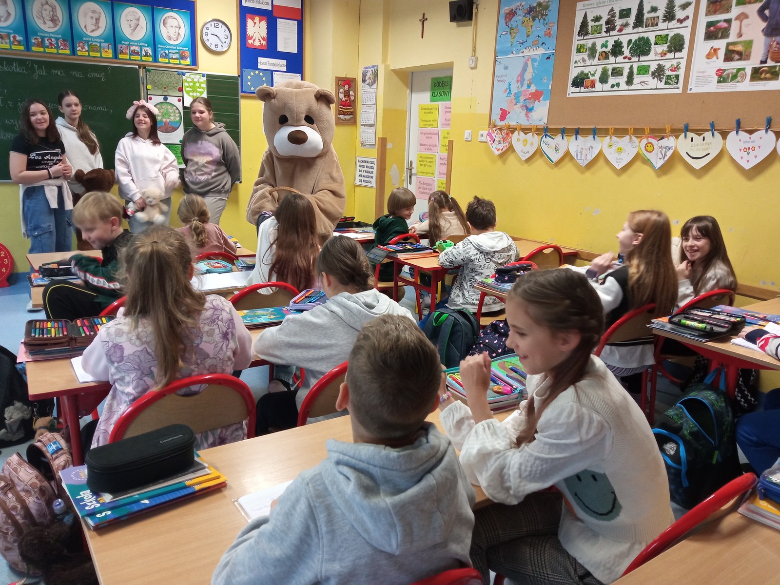 25 listopada uczniowie klas 1–3 oraz dzieci ze świetlicy świętowały Dzień Pluszowego Misia. Tego dnia każdy mógł przynieść swojego ulubionego misia, który towarzyszył podczas zajęć i zabaw. Dzieci słuchały opowiadań o słynnych misiowych bohaterach, brały udział w misiowych konkursach i tworzyły prace plastyczne przedstawiające pluszowych przyjaciół. W świetlicy odbyły się także wspólne gry i zabawy, a cała społeczność szkolna spędziła ten dzień w radosnej, ciepłej atmosferze pełnej uśmiechu i przytulnych misiów.