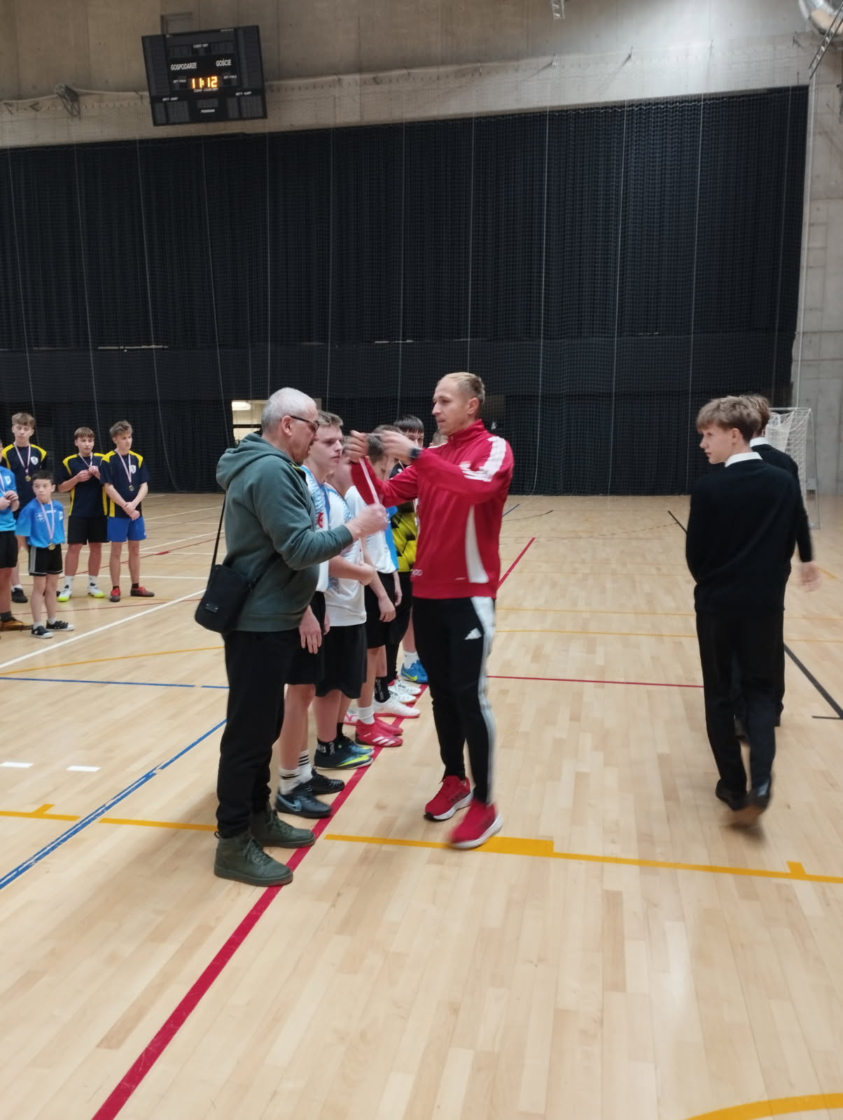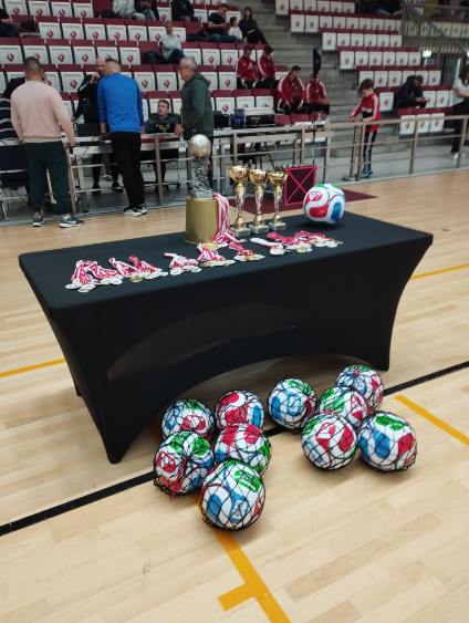 W dniu 11 listopada 2025 roku odbył się II Piłkarski Turniej Niepodległościowy o puchar Burmistrza Grodziska Mazowieckiego. Drużyna Szkoły Podstawowej nr 4 zdobyła 3 miejsce. Gratuluję drużynie waleczności i wspaniałego wyniku. Bardzo dziękuję trenerowi panu Andrzejowi Faliszewskiemu za przygotowanie drużyny. Bonusem dzisiejszego turnieju była obecność piłkarzy Pogoni Grodzisk Mazowiecki, a wśród nich kapitana Damiana Jaronia który był uczniem naszej szkoły. To było miłe spotkanie. Damian Jaroń wręczył medal Turnieju panu Andrzejowi Faliszewskiemu.