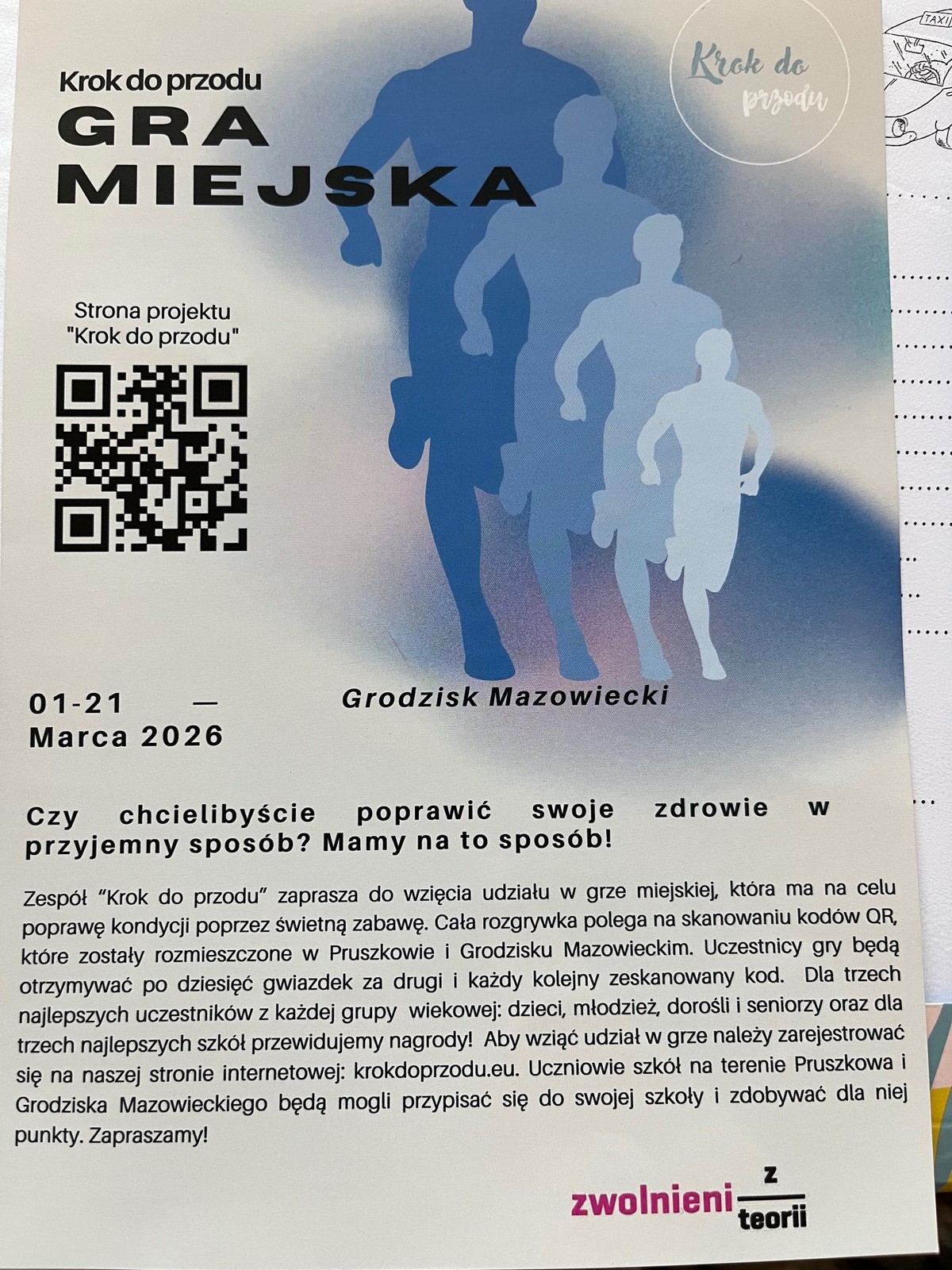 W piątek 13 marca pogoda nam dopisała, więc uczniowie klasy 6A wyruszyli na spacer po dzielnicy Łąki, aby krok po kroku zbierać punkty na rzecz naszej szkoły. Gra miejska krok do przodu ma na celu poprawę kondycji poprzez świetną zabawę. Rozgrywka polega na skanowaniu kodów QR, które zostały rozmieszczone na terenie Grodziska Mazowieckiego. Zachęcamy wszystkich do aktywności! W grze mogą brać udział dzieci, młodzież, dorośli, seniorzy oraz szkoły.