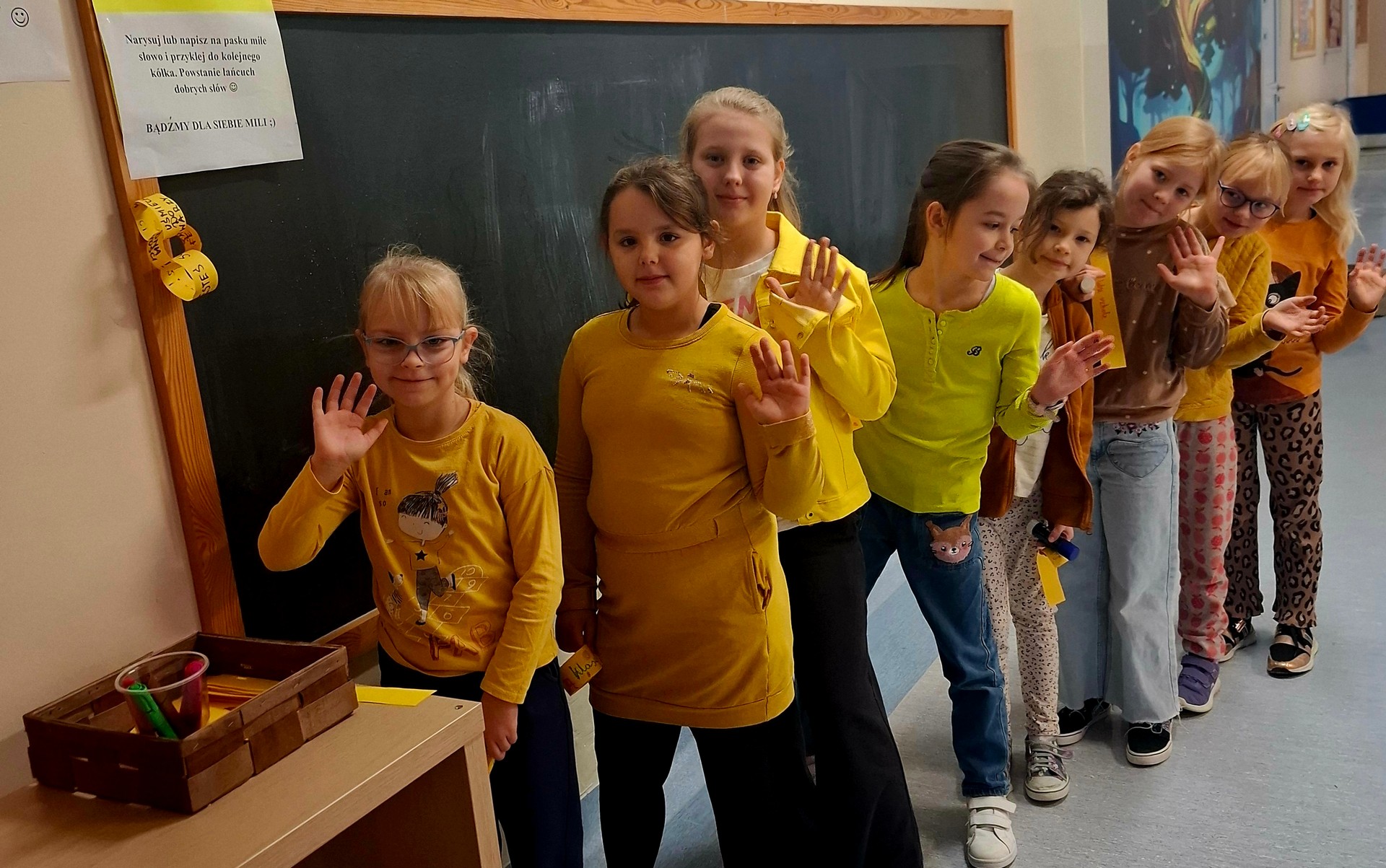 Łańcuch Dobrego Słowa stał się nie tylko słoneczną dekoracją korytarza, ale przede wszystkim przypomnieniem, jak ważne są dobre relacje, empatia i wzajemny szacunek.