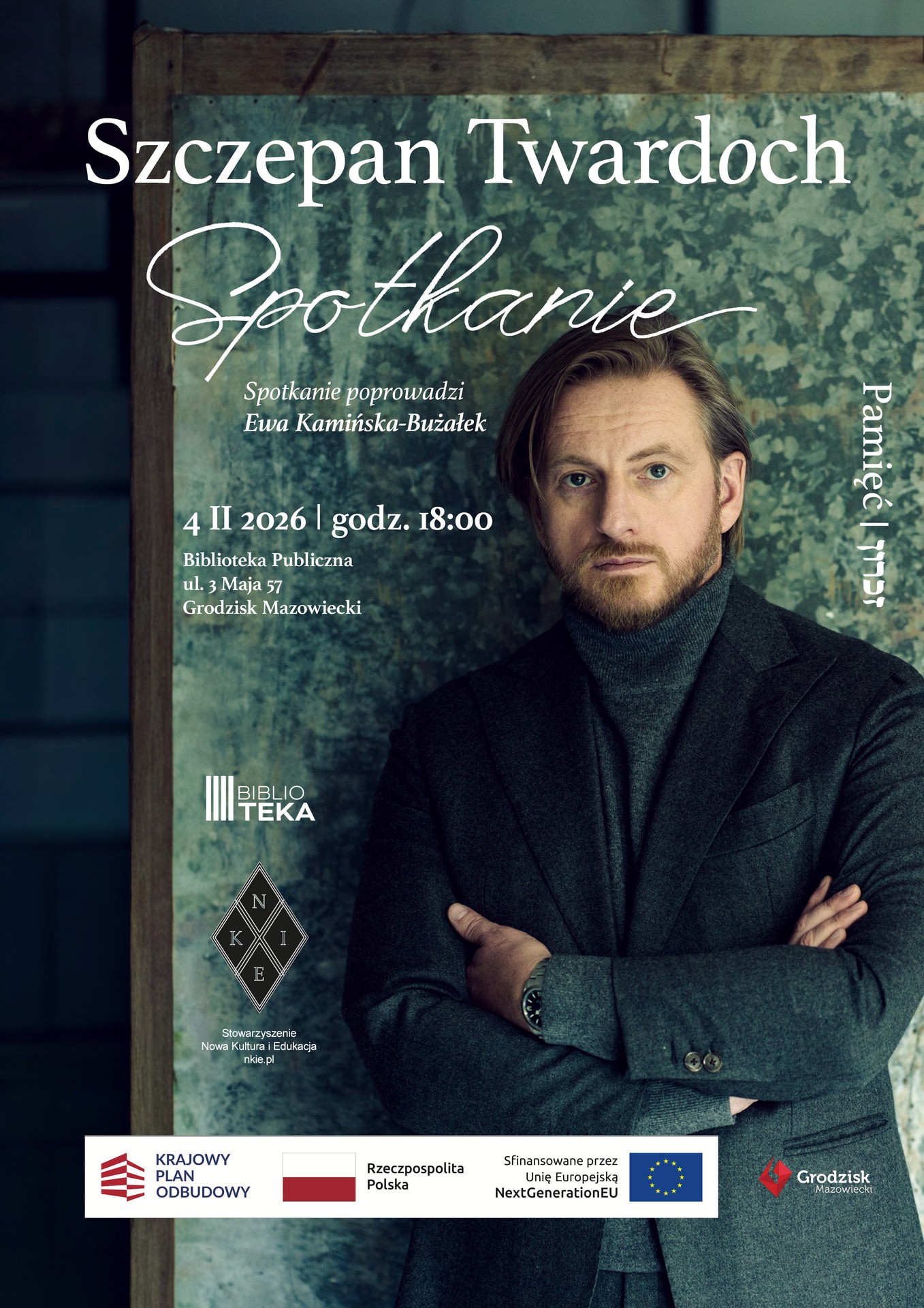 Stowarzyszenie Nowa Kultura i Edukacja oraz Biblioteka Publiczna Gminy Grodzisk Mazowieckim zapraszają na spotkanie z jednym z najważniejszych współczesnych polskich pisarzy, Szczepanem Twardochem.