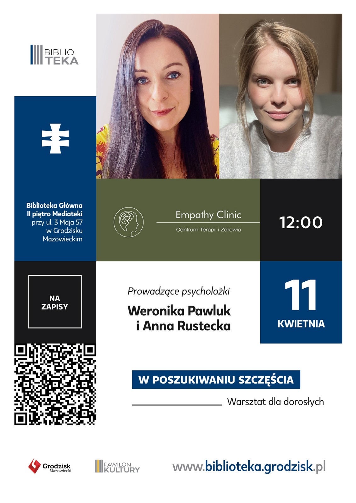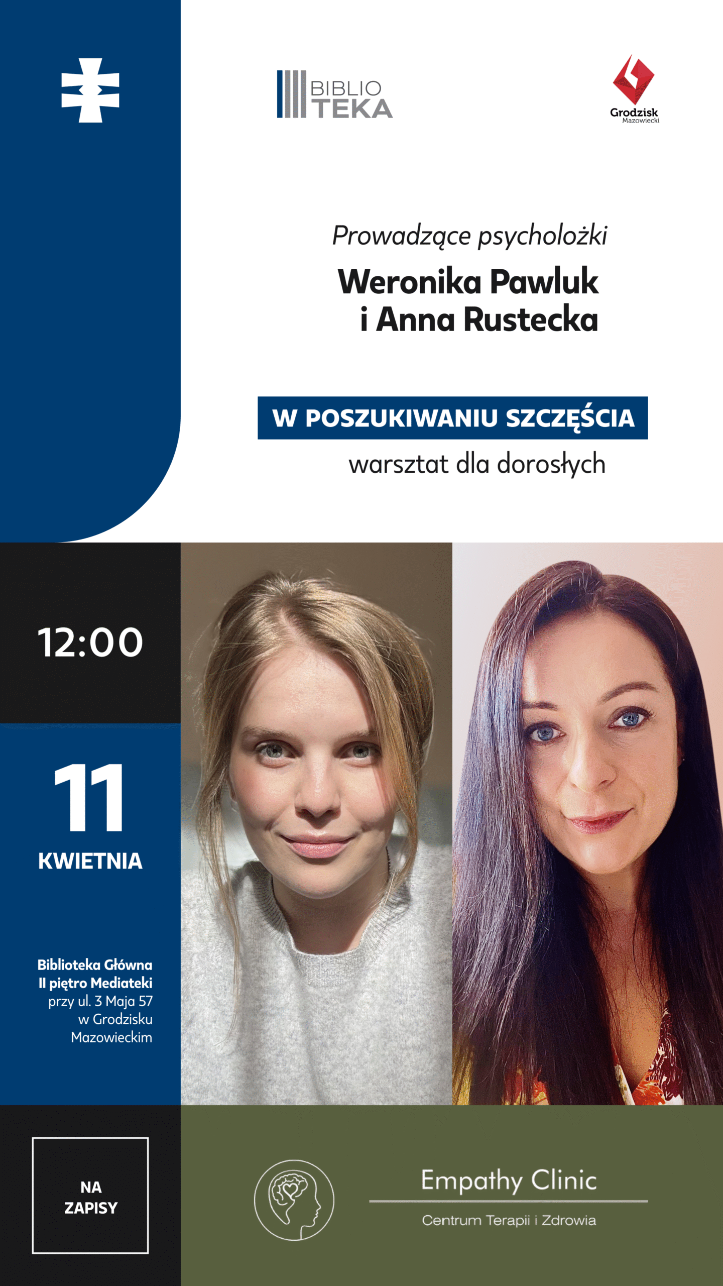 Burmistrz Grodziska Mazowieckiego Tomasz Krupski, Empathy Clinic Centrum Terapii i Zdrowia oraz Biblioteka Publiczna Gminy Grodzisk Mazowiecki zapraszają na warsztat dla dorosłych, „W poszukiwaniu szczęścia”.