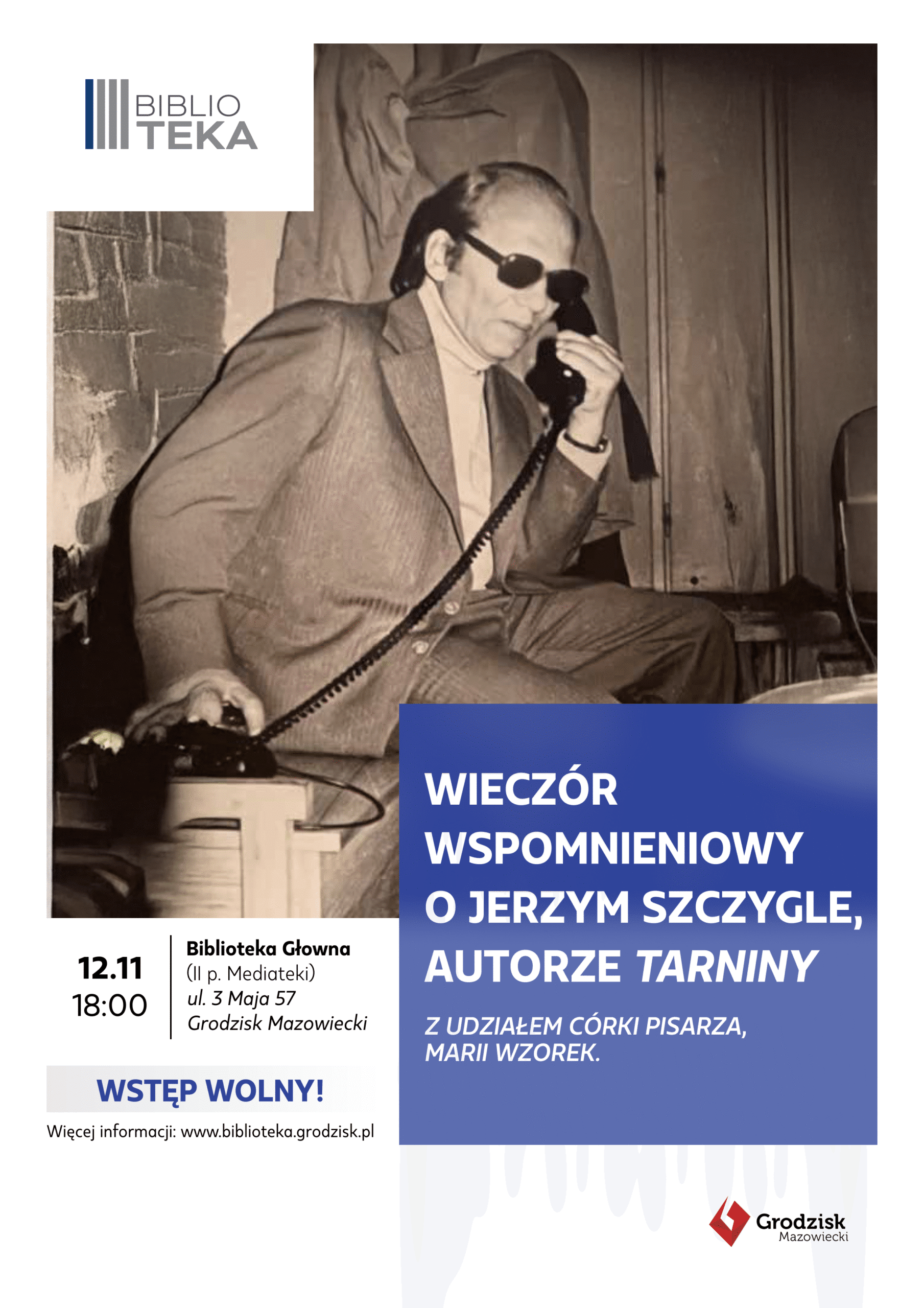 Biblioteka Publiczna Gminy Grodzisk Mazowiecki zaprasza na wieczór wspomnieniowy o Jerzym Szczygle, autorze „Tarniny”. W spotkaniu udział weźmie córka pisarza, Maria Wzorek.