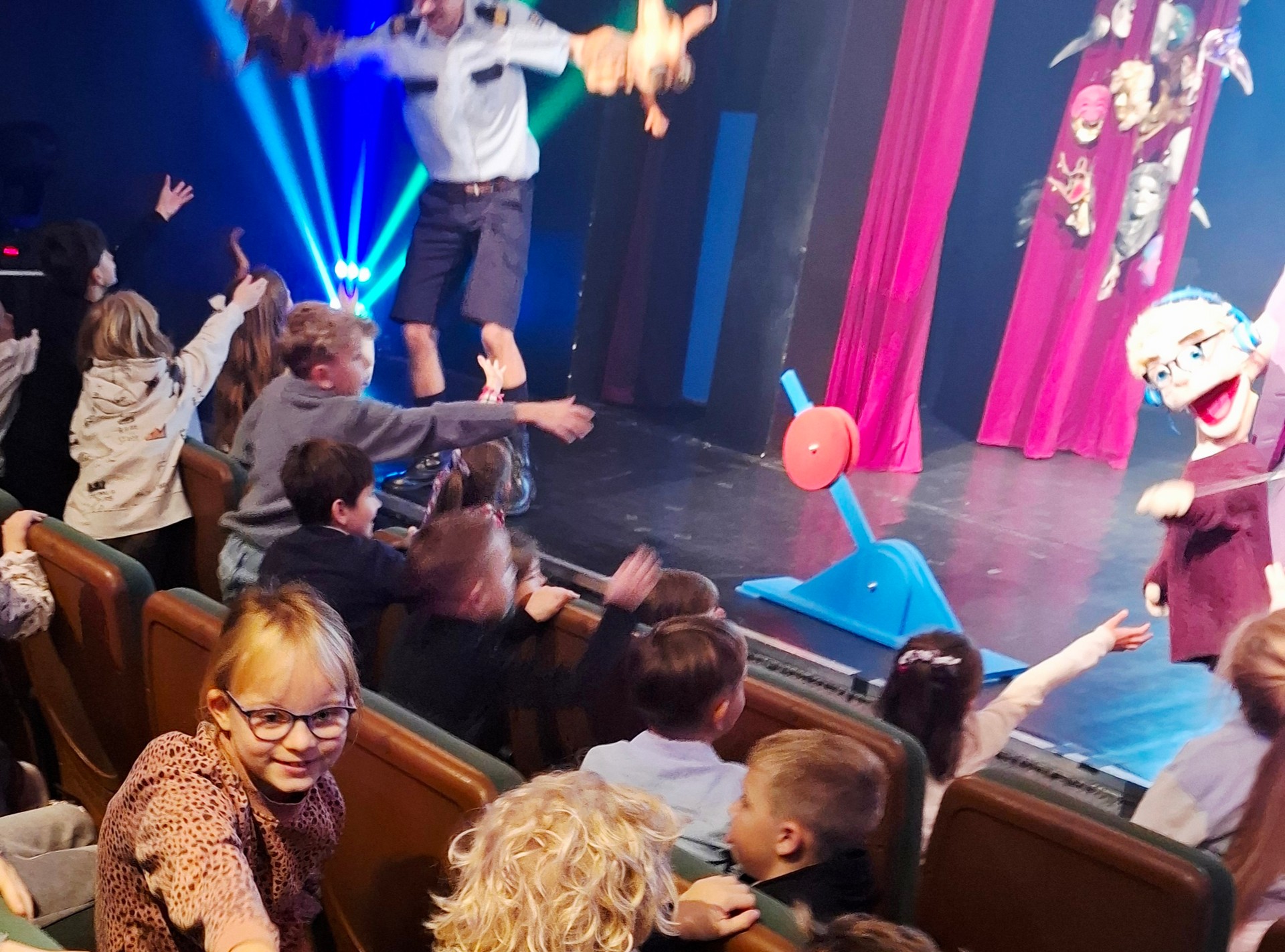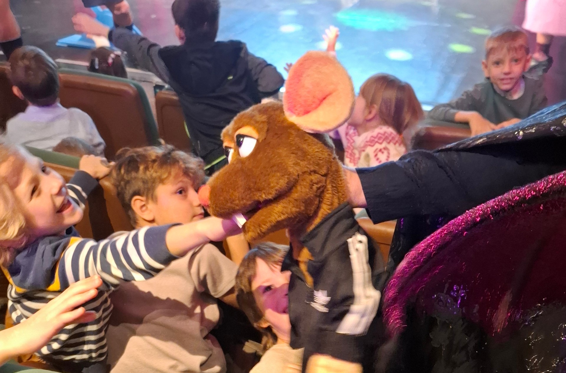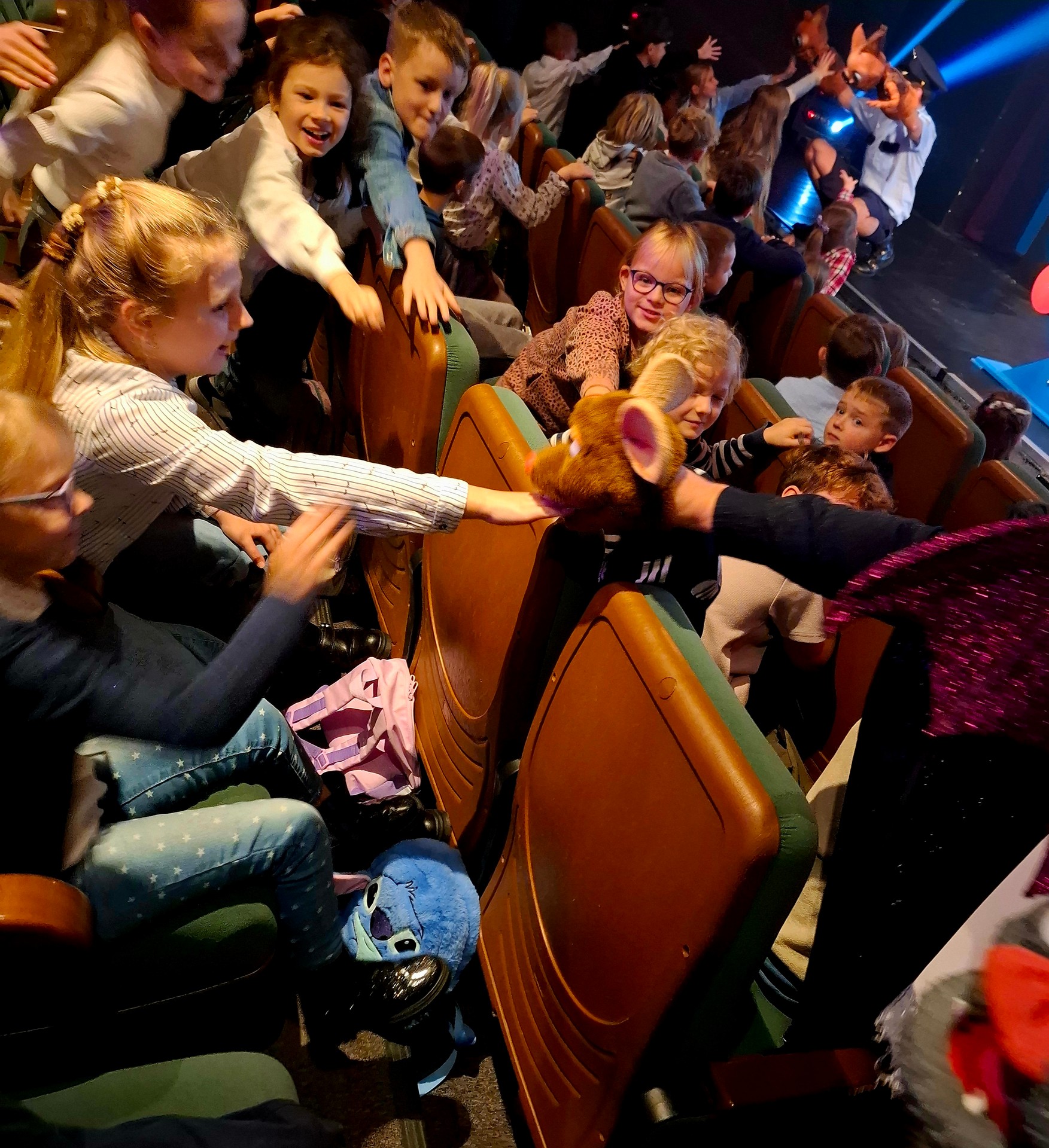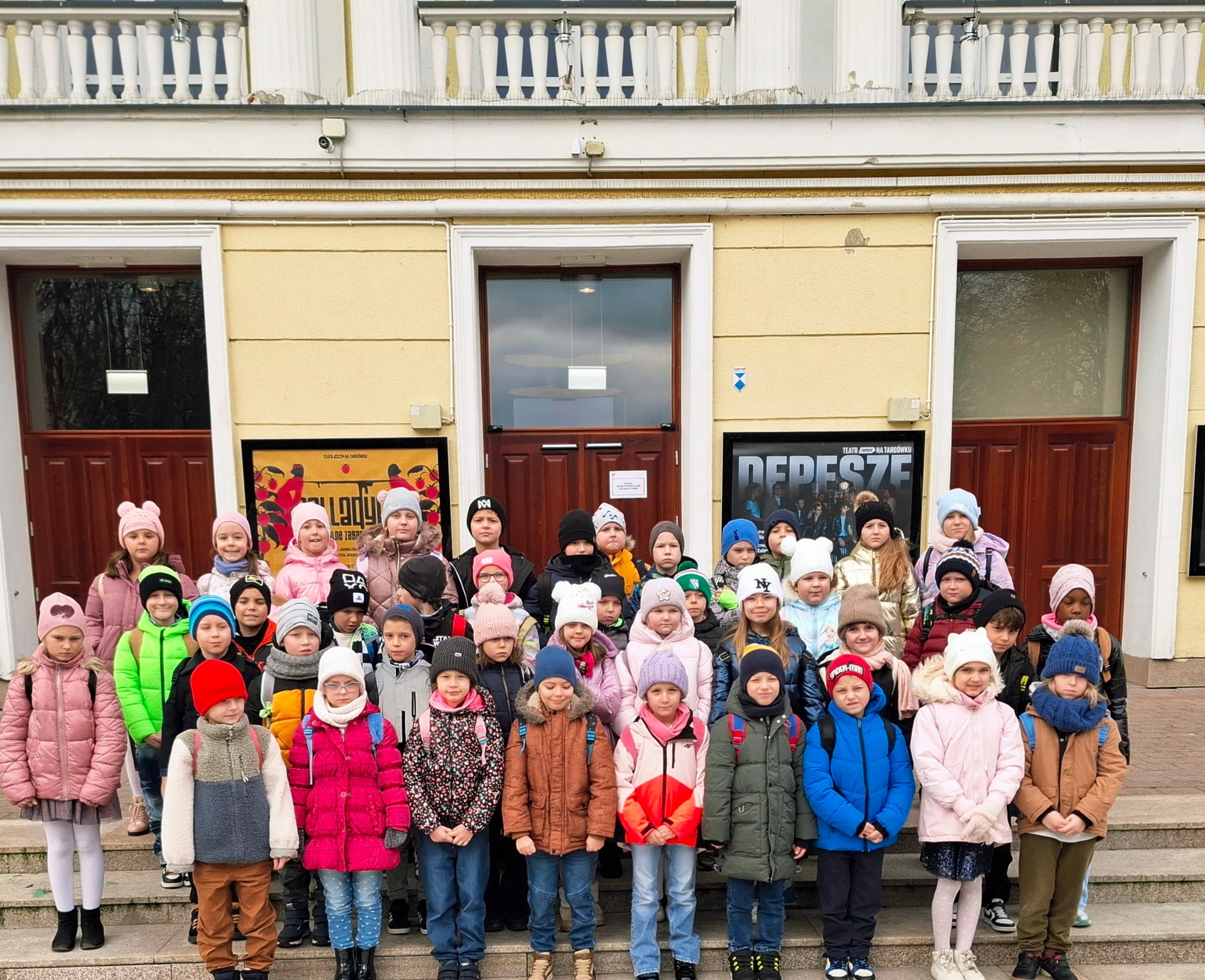 W dniu 18.11.2025 roku uczniowie klas 2A i 2B wybrali się na wyjątkową wycieczkę do Teatru Rampa w Warszawie, gdzie mieli okazję obejrzeć pełen magii i humoru spektakl pt. ”Baśniowy zawrót głowy”. Dynamiczna akcja, zabawne dialogi oraz efektowne kostiumy i scenografia sprawiły, że dzieci z ogromnym zaciekawieniem śledziły losy bohaterów. Twórcy przedstawienia zadbali o to, by w widowisko wpleść elementy humorystyczne, muzyczne oraz edukacyjne, dzięki czemu młodzi widzowie nie tylko świetnie się bawili, ale także wynieśli ze spektaklu ważne przesłania.