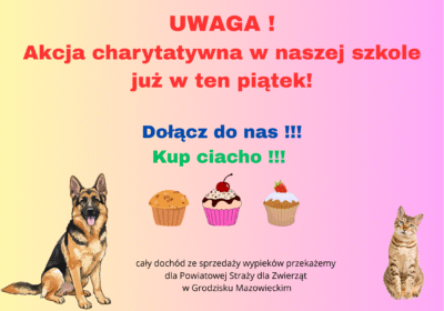 Gorąco zapraszamy wszystkich uczniów naszej szkoły do udziału w akcji charytatywnej. Juz w ten piątek 31. października na korytarzu głównym i na 1. piętrze w czasie przerw będziemy sprzedawać przepyszne słodkie domowe wypieki. Zapraszamy do Więcej